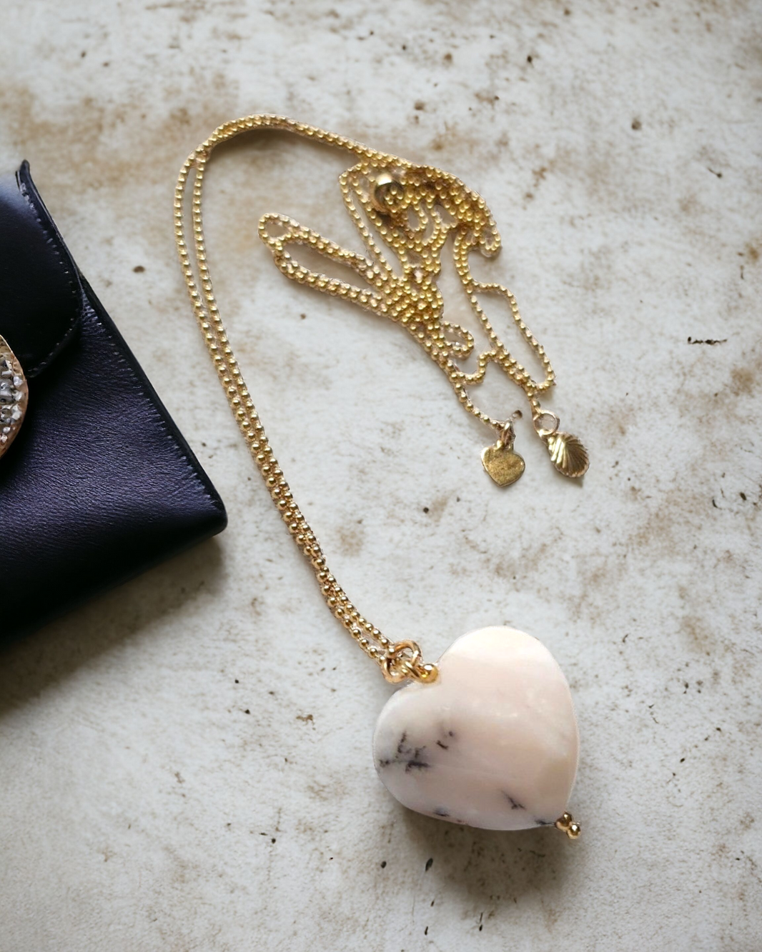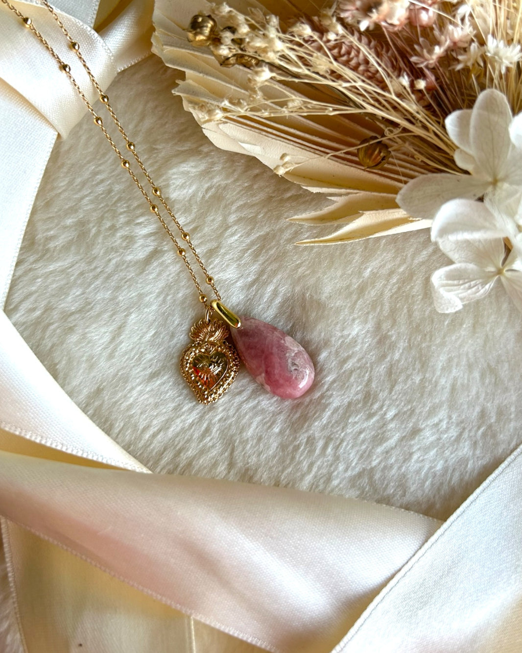 Collier Coeur en Opale Rose