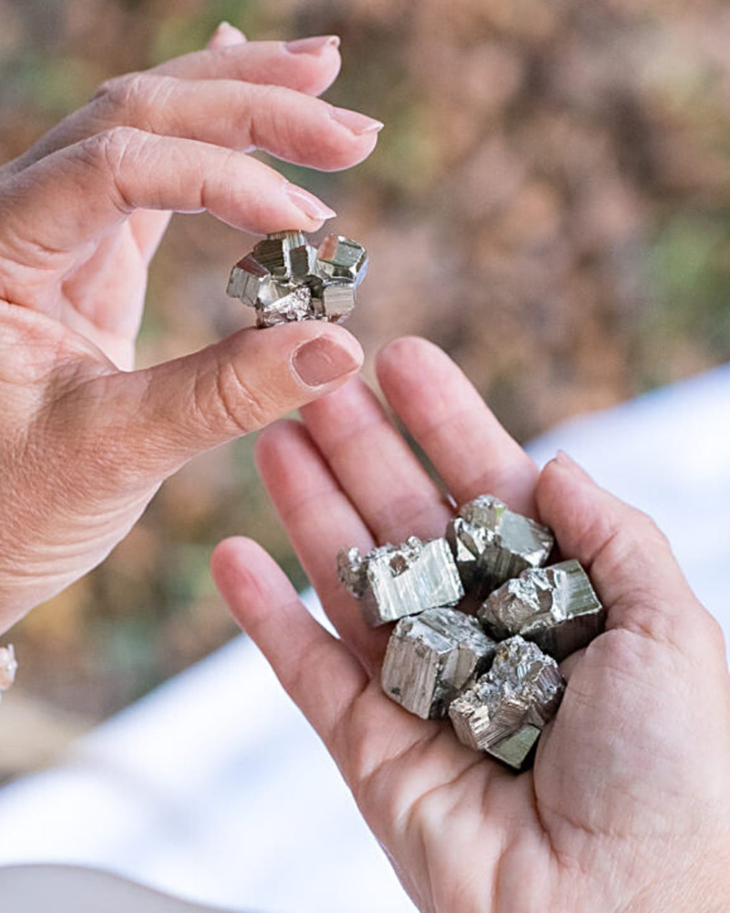 Tu as besoin de structurer tes idées, porte des bijoux tels que bracelets, colliers, ou malas. en Pyrite pour te donner cette force. Récite le mantra mentionné ci-dessus pour t'aider. Tu peux aussi poser une pyrite brut sur ton bureau et voit ce qu'il se passe.