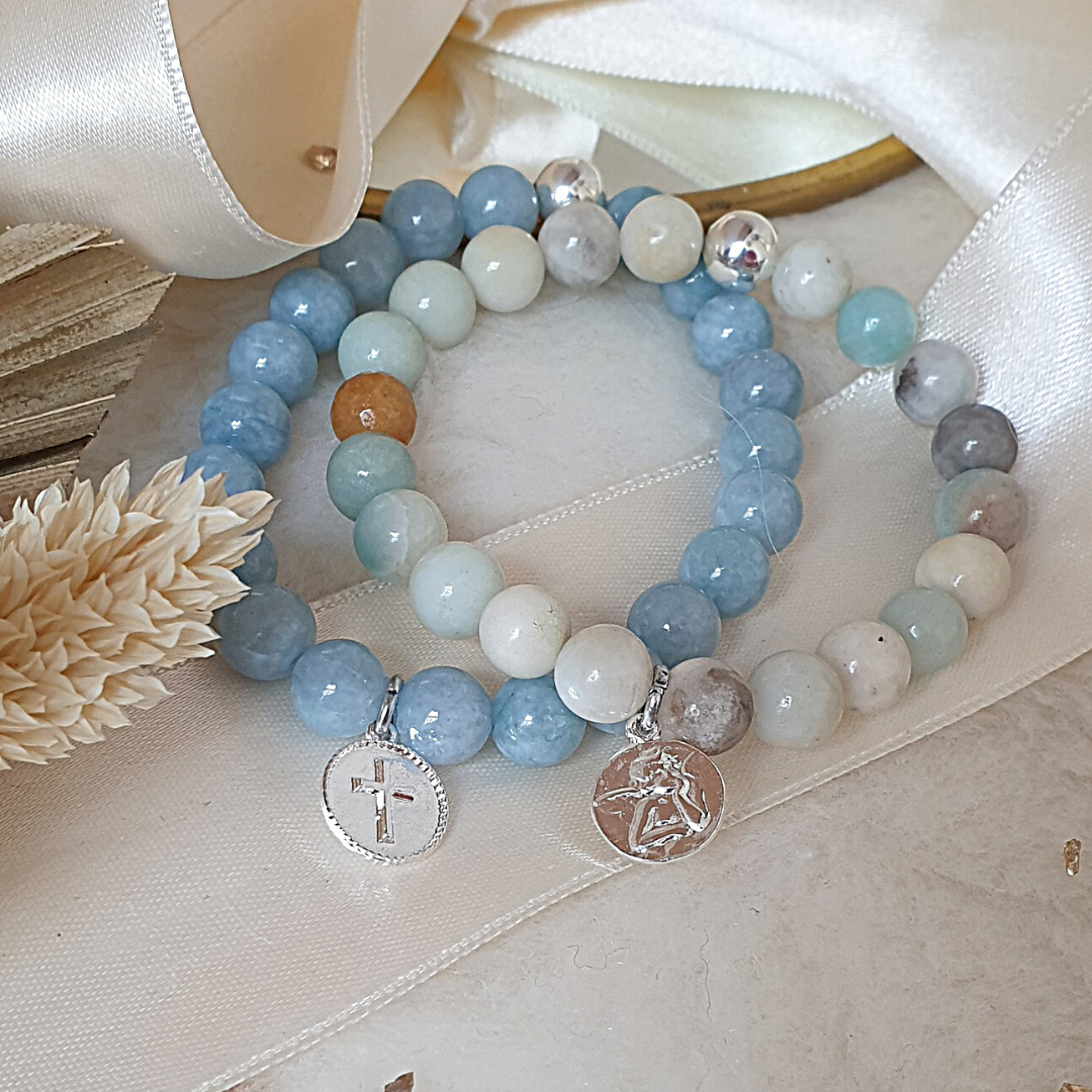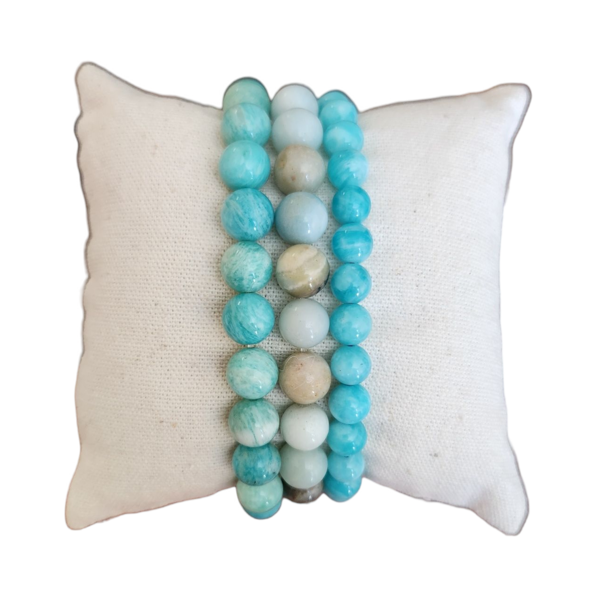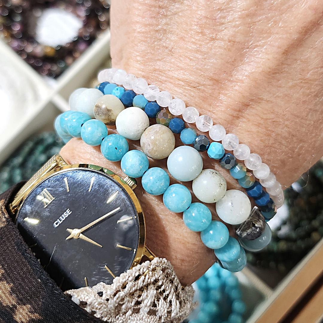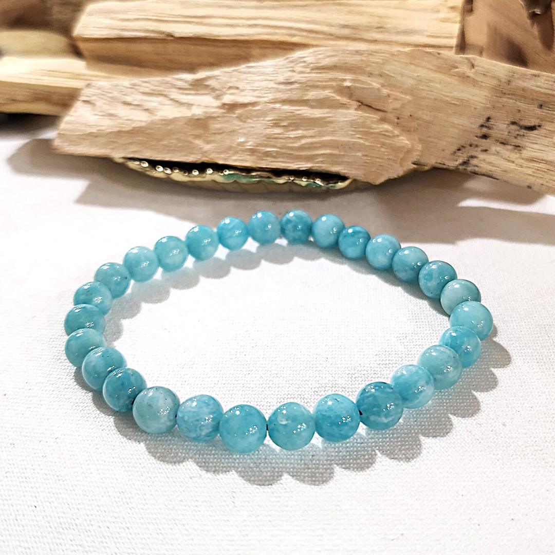 - Composition : Perles de pierres naturelles d'amazonite et lien élastiqué