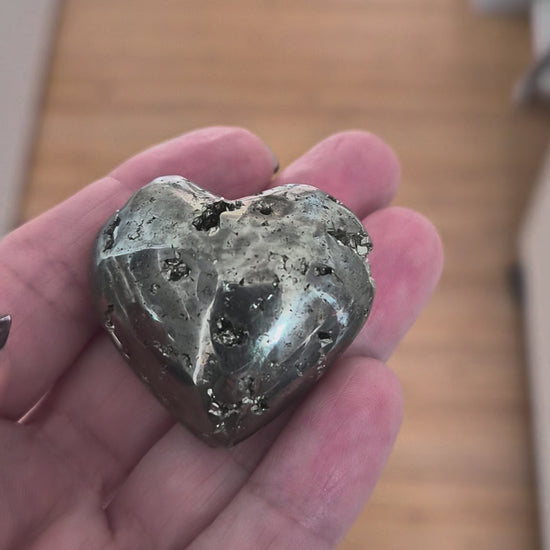 Façonnée en cœur, elle unit la force mentale à l’intention du cœur. La pyrite aide à clarifier les pensées, à suivre son fil conducteur et à garder une vision stable lorsque plusieurs projets coexistent. Elle allume le feu intérieur, éclaire les idées et soutient la capacité à passer de la pensée à la matière.
