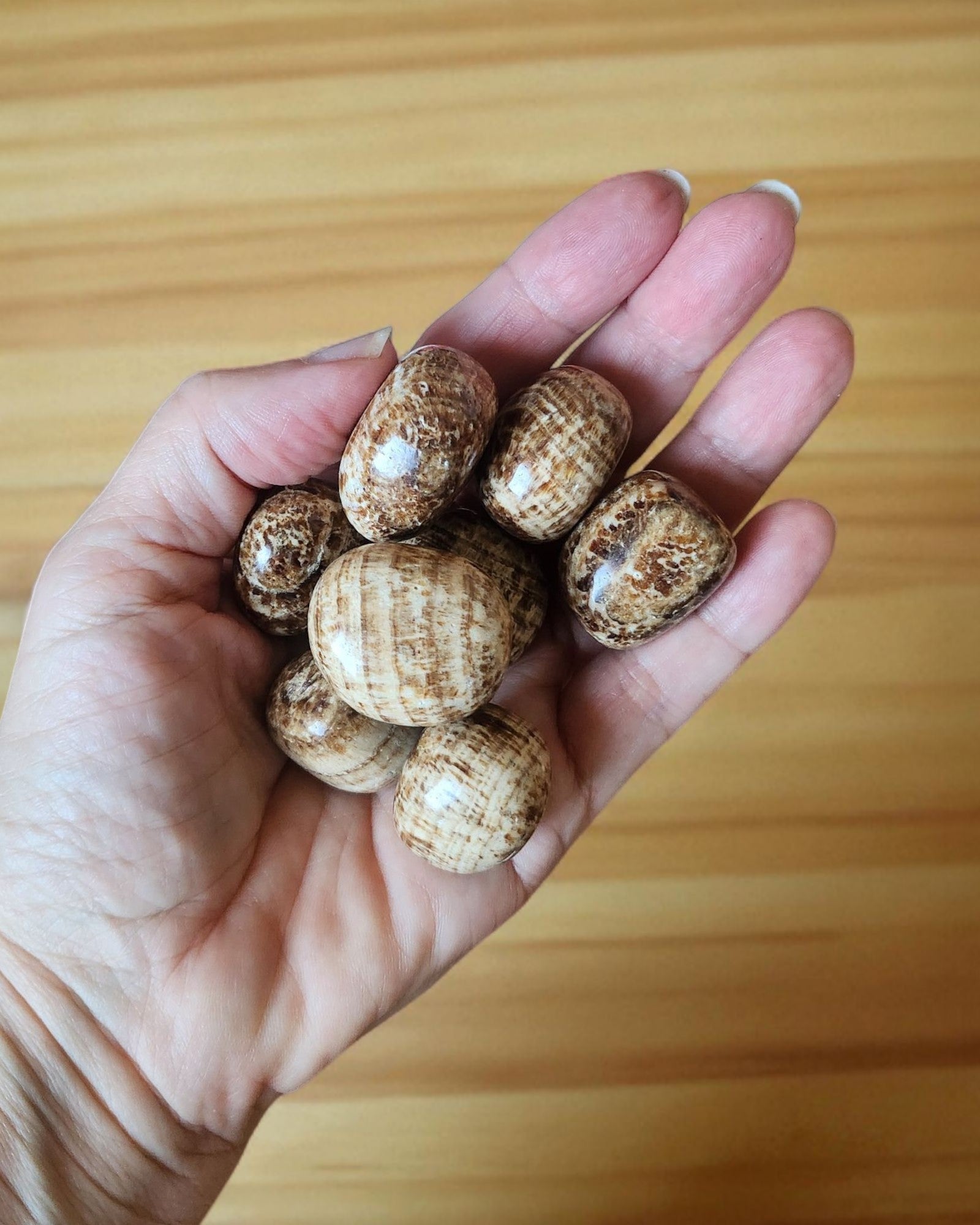 Chaque pierre roulée est unique par sa forme et ses nuances naturelles. Elle se glisse facilement dans la poche ou le sac et t’accompagne partout au quotidien. Utilisée en méditation, elle aide à se recentrer et à calmer le flux de pensées. Placée près du lit, elle favorise un sommeil plus paisible.