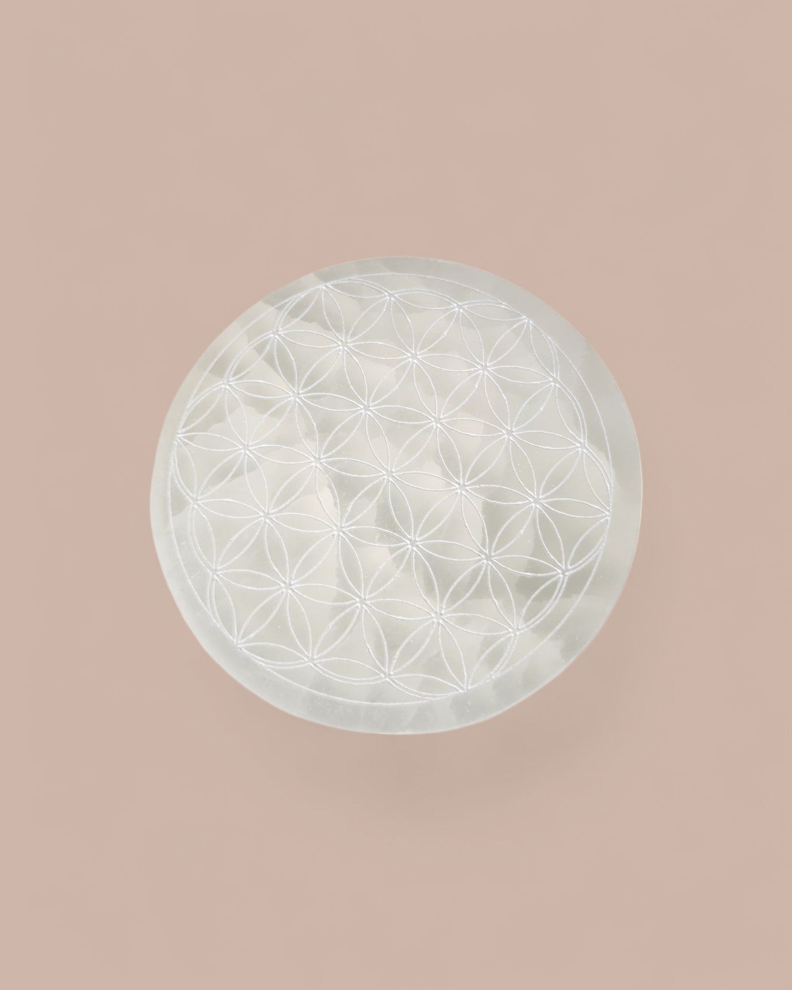 Découvre ici une fleur de vie de qualité, en sélénite, qui t’aidera à profiter au mieux de tes bijoux et pierres naturelles.