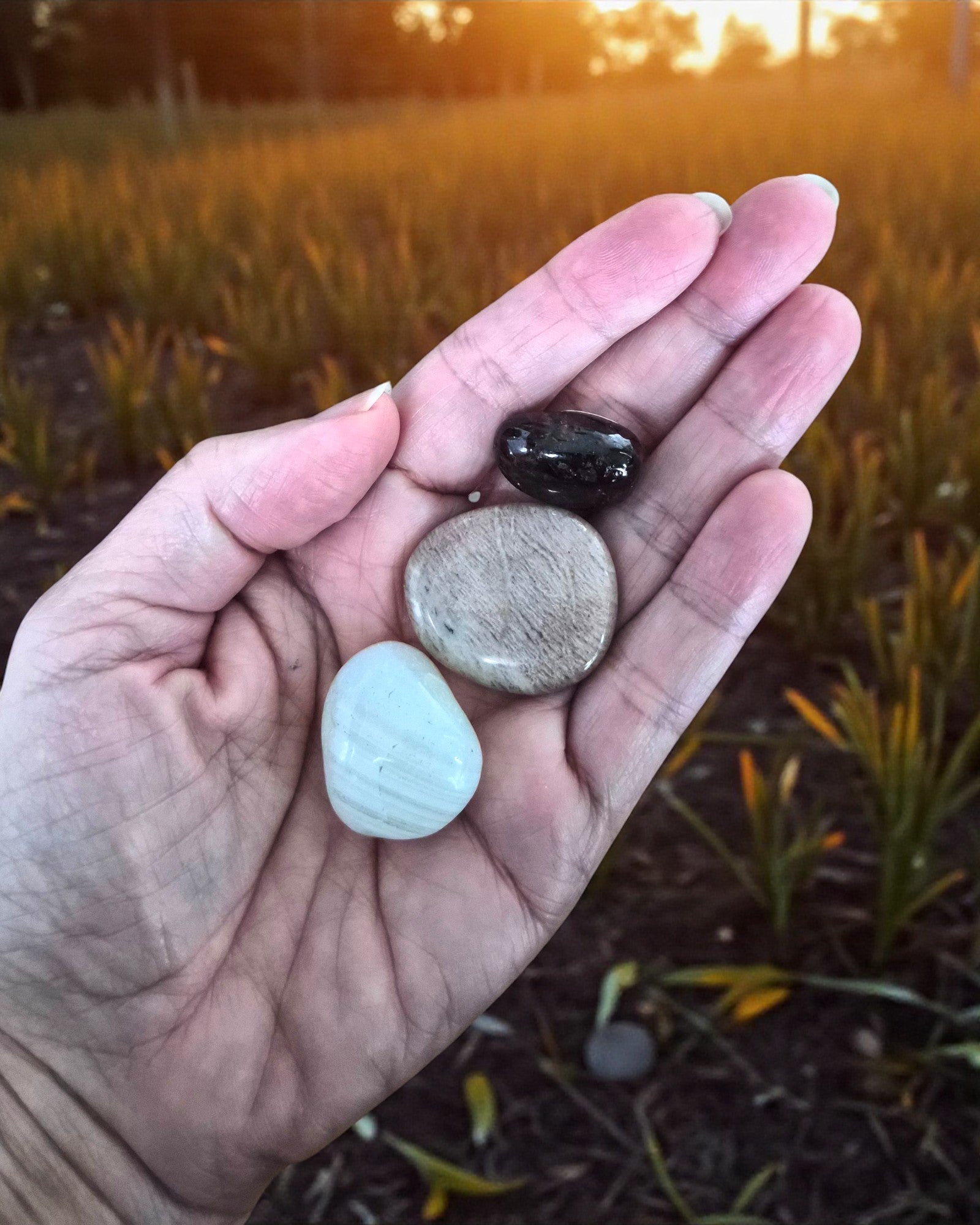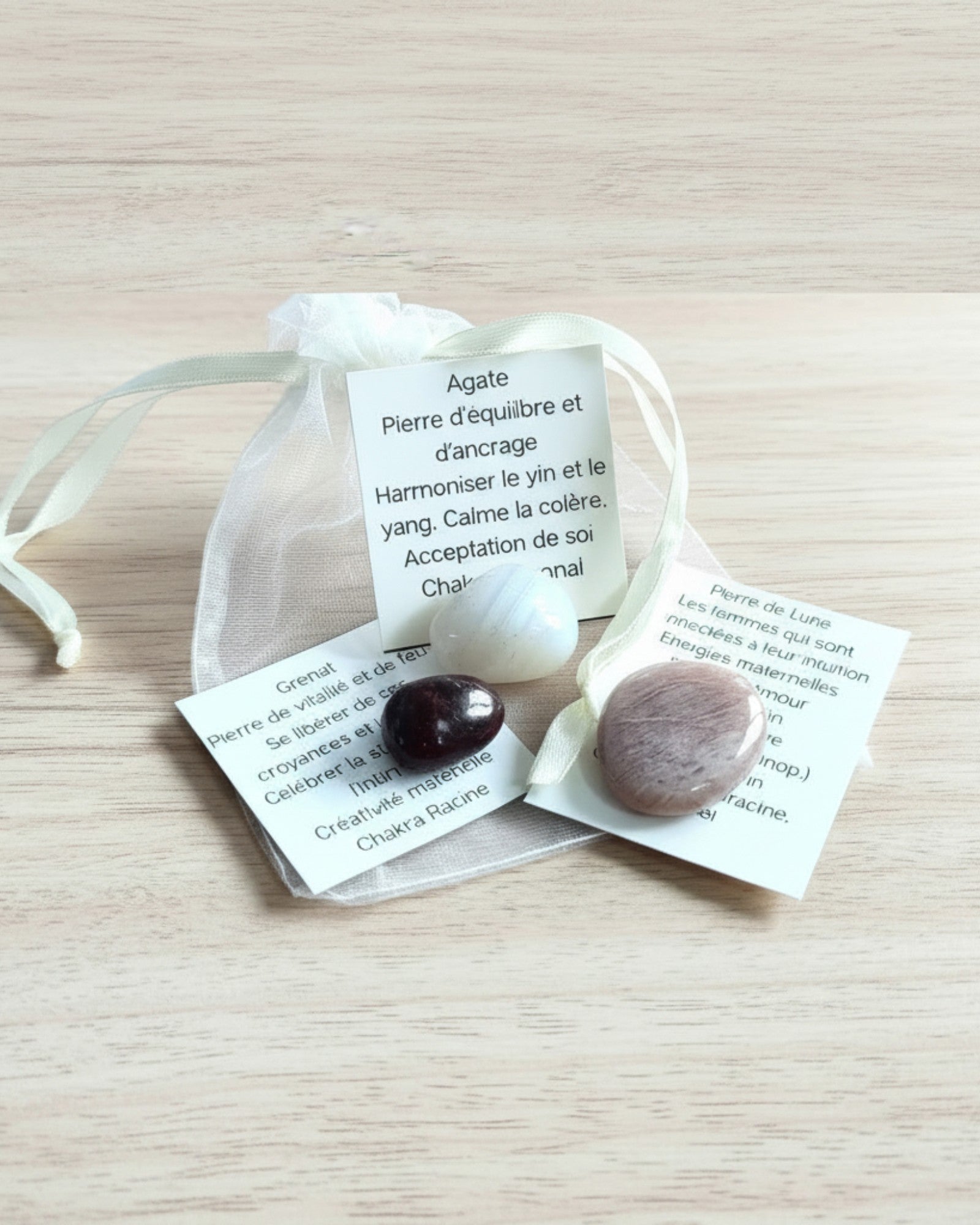 Chaque pierre est unique. Les formes, tailles et nuances peuvent légèrement varier, rendant chaque pochon profondément personnel.