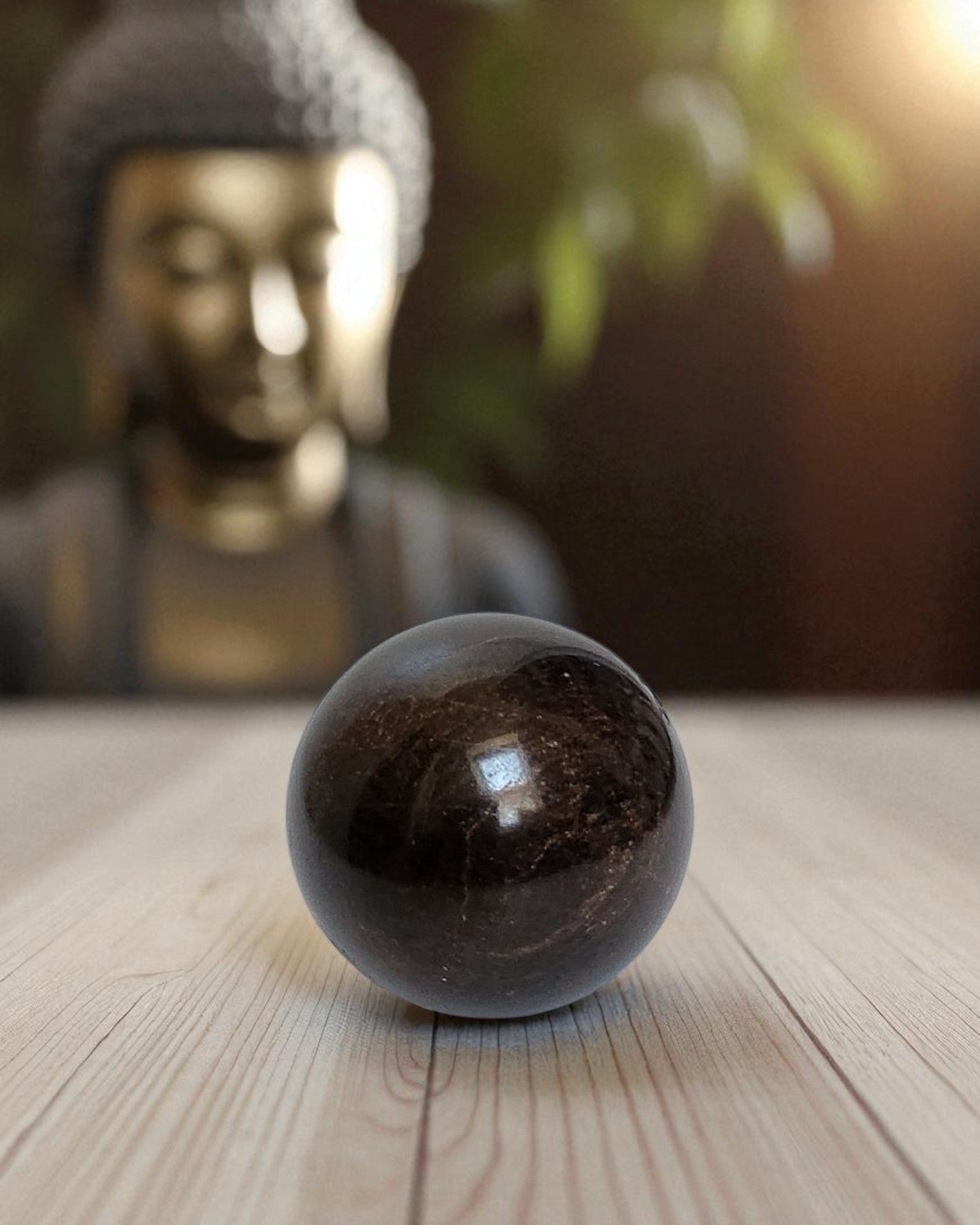 Grâce à sa forme sphérique, la sphère de grenat diffuse son énergie de manière douce et équilibrée. Placée dans une pièce, elle favorise une ambiance chaleureuse et stimulante. Utilisée en méditation, cette pierre de grenat soutient la concentration, l’élan créatif et l’ancrage profond à la Terre.
